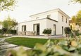 Moderne Rückansicht des Stadthauses Flair 124 mit Staffelgeschoss, großzügiger Terrasse und gepflegtem Garten im AbendlichtFrontalansicht des Stadthauses Flair 124 mit Staffelgeschoss und Eingangsbereich, eingerahmt von Vorgarten und moderner Fassadengestaltung
